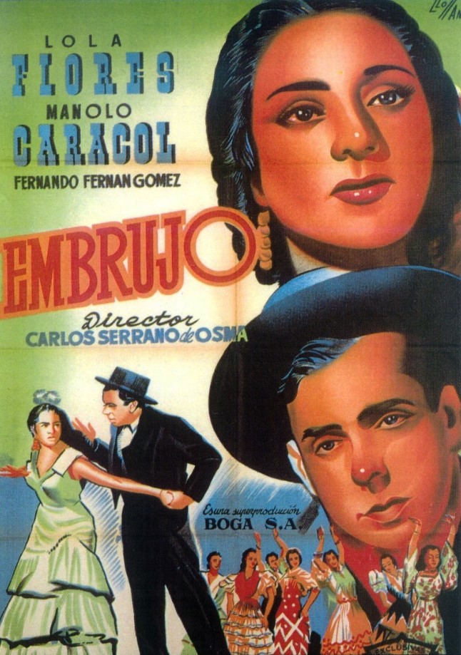 Este año presentamos la película Embrujo, dirigida por Carlos Serrano de Osma y protagonizada por Lola Flores y Manolo Caracol, dos estrellas incontestables de la música y el baile flamencos. Lejos de estar frente a una película asociada a las españoladas del cine español del momento, el equipo que estaba detrás de la productora Boga apostó por una realización y una propuesta estética que dialogaban con la visualidad del expresionismo cinematográfico a través de una puesta en escena y un montaje varados en la mejor vanguardia de cine europeo de principios de siglo.