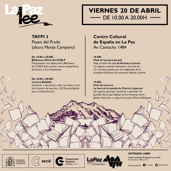Un año más el Centro Cultural de España en La Paz se suma a la movida 'La Paz Lee' organizada por la Secretaría Municipal de Cultural de la Alcaldía de La Paz.