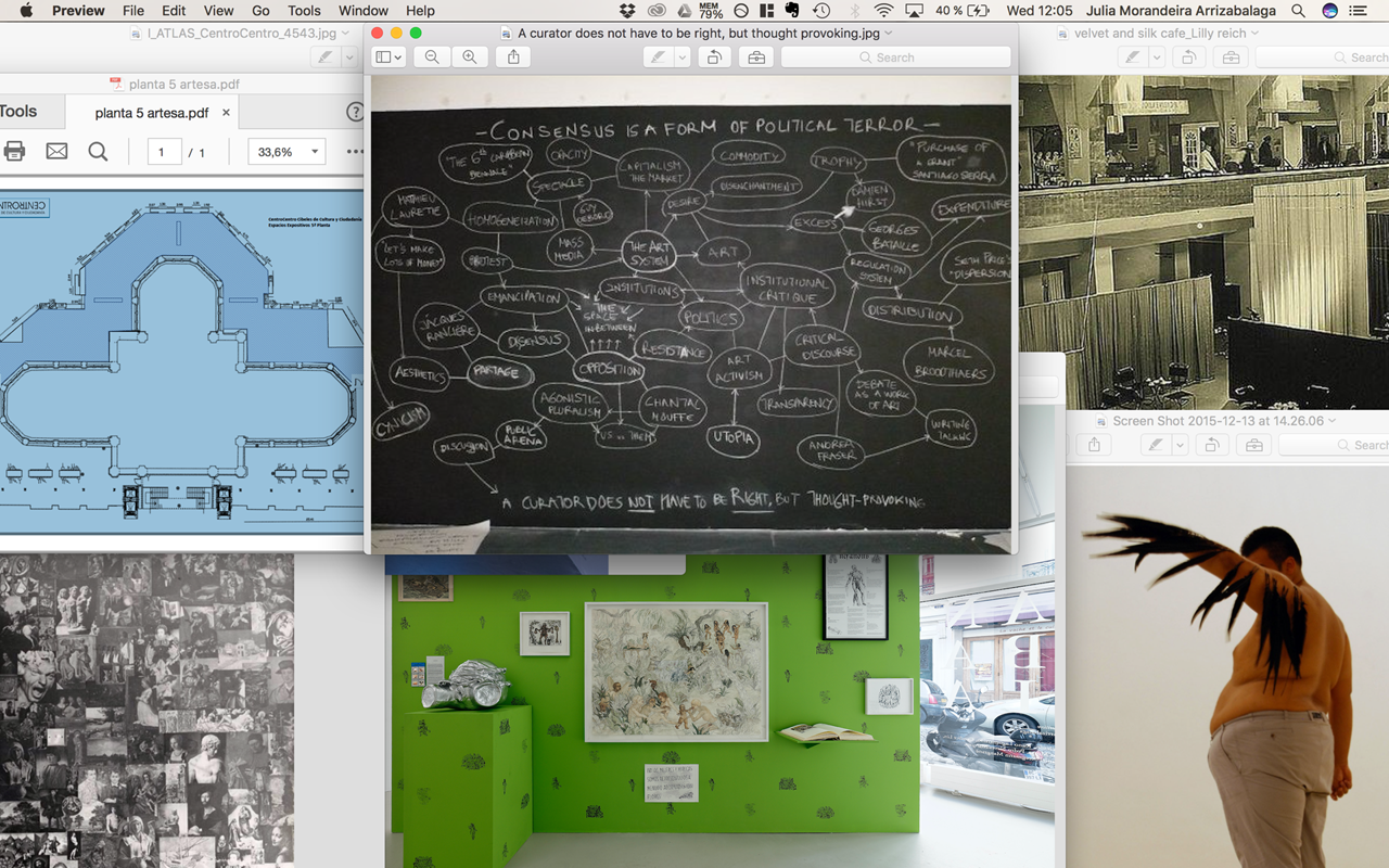 La problematización de las infraestructuras epistemológicas de la modernidad -relatos, Historia, instituciones, colecciones o museos- a través del cuerpo, de la nota al pie de página, relatos menores u otras experiencias contaminadas es un marco relevante de reflexión; en ese sentido y de manera más reciente, la exposición ATLAS de las ruinas DE EUROPA en CentroCentro Madrid (2016) exploraba la reconfiguración de las narrativas históricas y la construcción del proyecto geopolítico de Europa a través de la semántica de la ruina.