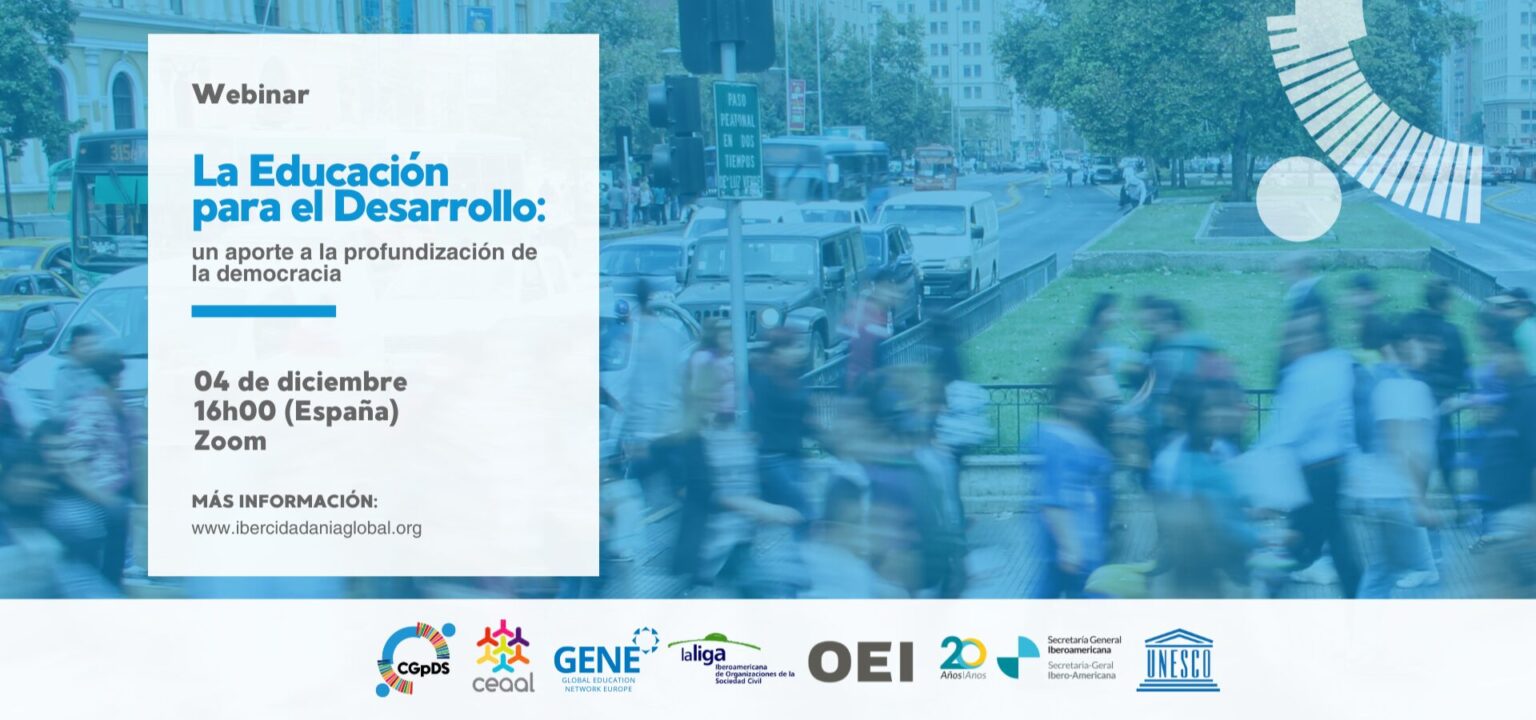 El Programa de Ciudadanía Global para el Desarrollo Sostenible (Programa de CGpDS), junto con el Consejo de Educación Popular de América Latina y el Caribe (CEAAL), la Global Education Network Europe (GENE), la Liga Iberoamericana, la Oficina Regional de la UNESCO para América Latina y el Caribe, la Organización de Estados Iberoamericanos (OEI) y la Secretaría General Iberoamericana (SEGIB), organizan este webinar estratégico sobre el rol de la Educación para el Desarrollo (EpD) en el fortalecimiento democrático.